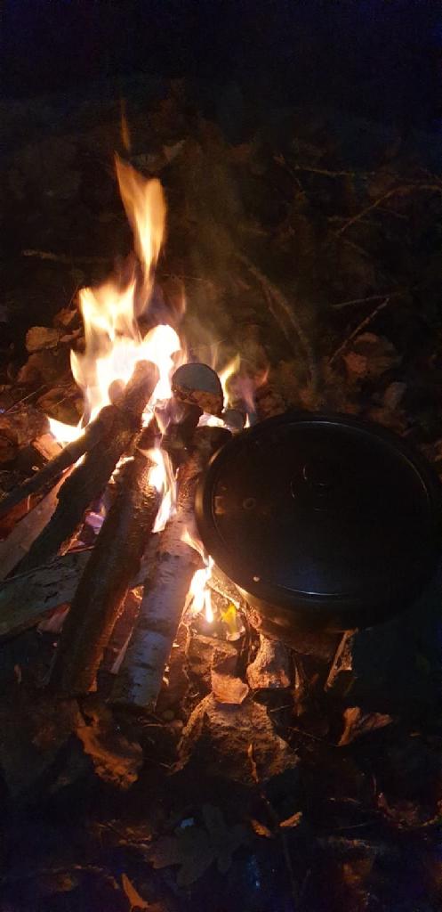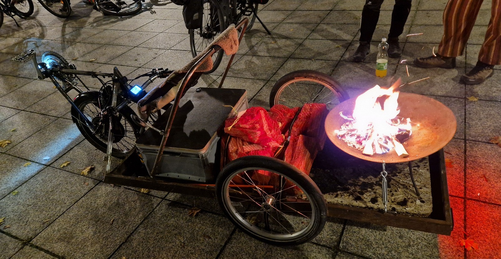 Topf,Holz und Suppe wird alles mit dem Rad mitgebracht