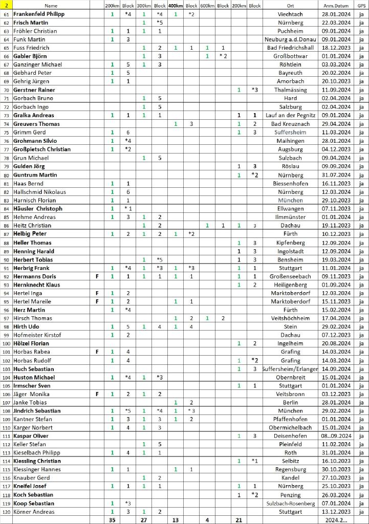 an den Kontrollstellen und im Ziel jeweils Plus Startblock Zeit . Jeder Teilnehmer/inn hat